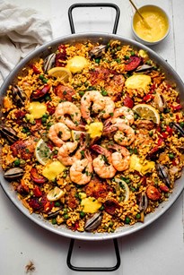 Travel to Spain with your special someone to create and enjoy your own delicious fare! Featured dishes: Bacon Wrapped Chorizo Stuffed Date Tapas, Traditional Seafood Paella and a Spanish Creme Brulé called Crema Catalana with Fresh Berries. Please note that purchasing one spot reserves a spot for two people