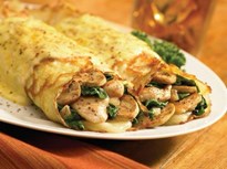 Featured dishes: Caprese Skewers, Crepe Chicken Florentine, Roasted Red Potatoes & Lemon Crepe Suzette